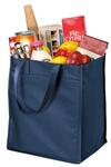This simple grocery tote features a square bottom to sit upright. Double-stitched seams and reinforced handles add durability.